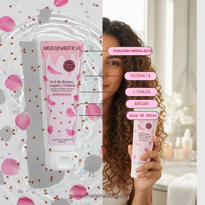 Este gel con agua de Rosas permite moldear tus rizos con una definición media-alta, además de mantener tu cabello definido, le ofrece un movimiento natural gracias a los ingredientes de Agua de Rosas, Aceite de Argan y Linaza. Estos ingredientes también son beneficiosos para controlar el frizz, mantener la salud del largo de tu pelo y asegurar una definición duradera.